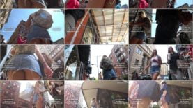 Slutty teen with nice tight boobs wearing extra short denim shorts public voyeur video.